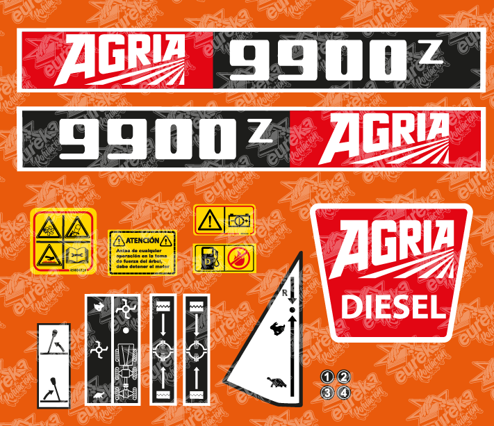Juego de pegatinas compatible para tractor Agria 9900Z- 2