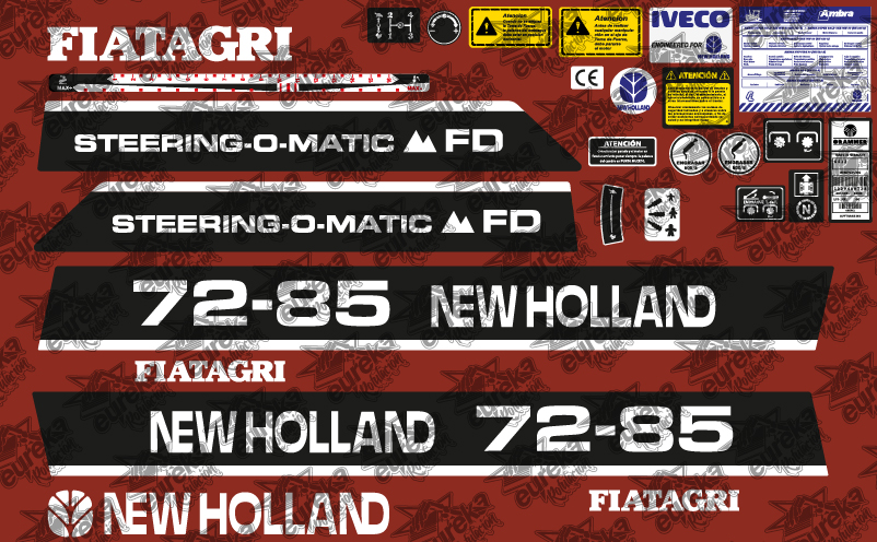 Juego de pegatinas compatible New Holland 72-85 steering o matic FD