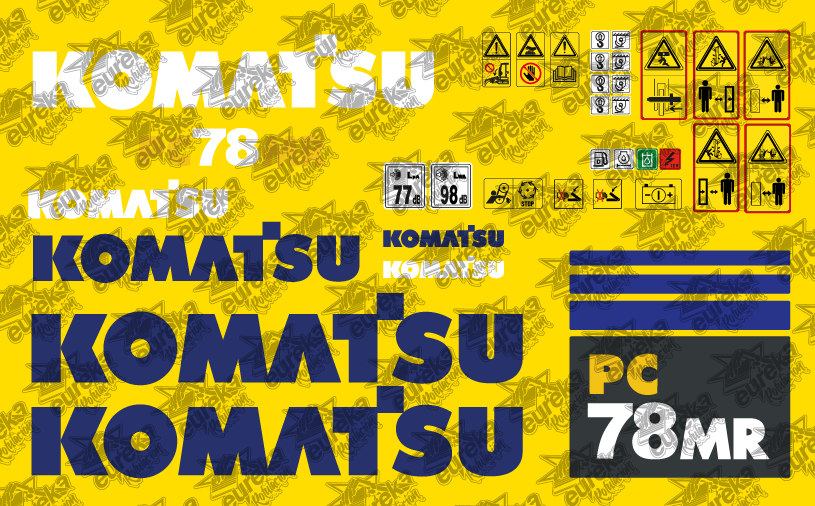 Renueva la imagen y la señalización de tu máquina con nuestro kit de pegatinas compatible con Komatsu PC78 MR- 6. Diseñado para sustituir adhesivos deteriorados y mantener la miniexcavadora en perfecto estado estético y funcional.