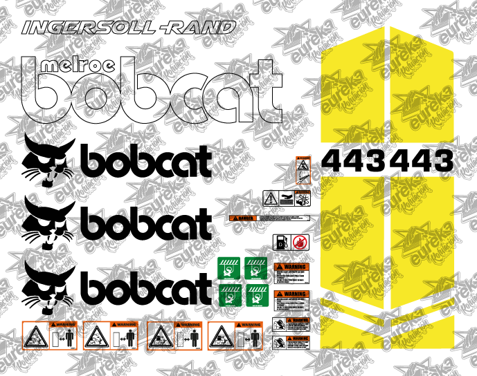 Renueva la imagen y la señalización de tu máquina con nuestro kit de pegatinas compatible con BOBCAT 443.