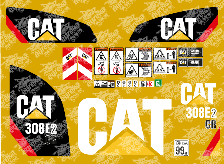 Renueva la imagen y la señalización de tu máquina con nuestro kit de pegatinas compatible con Caterpillar 308 E2C.