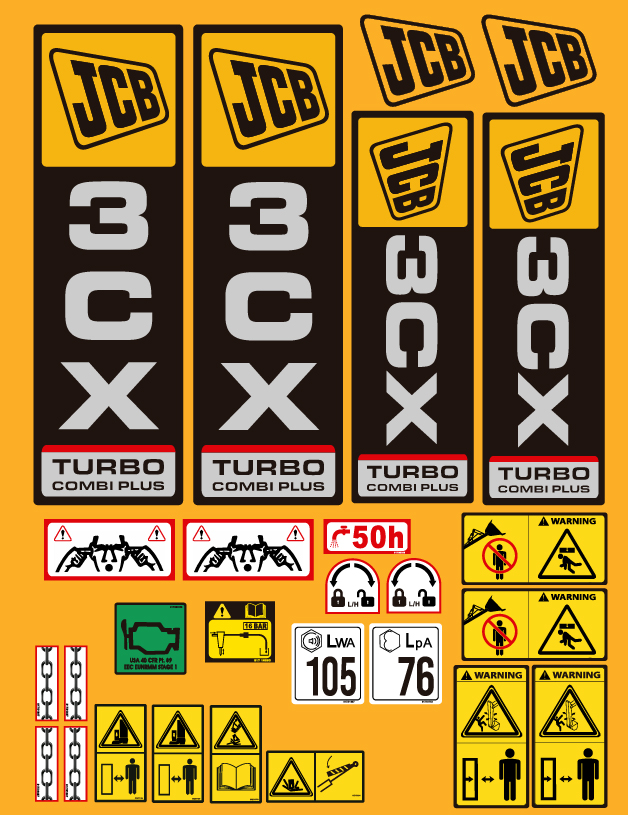 Juego de pegatinas compatible JCB 3CX La Turbo Combi Plus